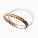 Its millennial color is a showpiece of creative expression that transcends tradition. Our solid 7mm wide, 18KT Rose Gold hinged bracelet provides a daily reminder of the precious memories that lie within, mindful of turning every day into a special gift.